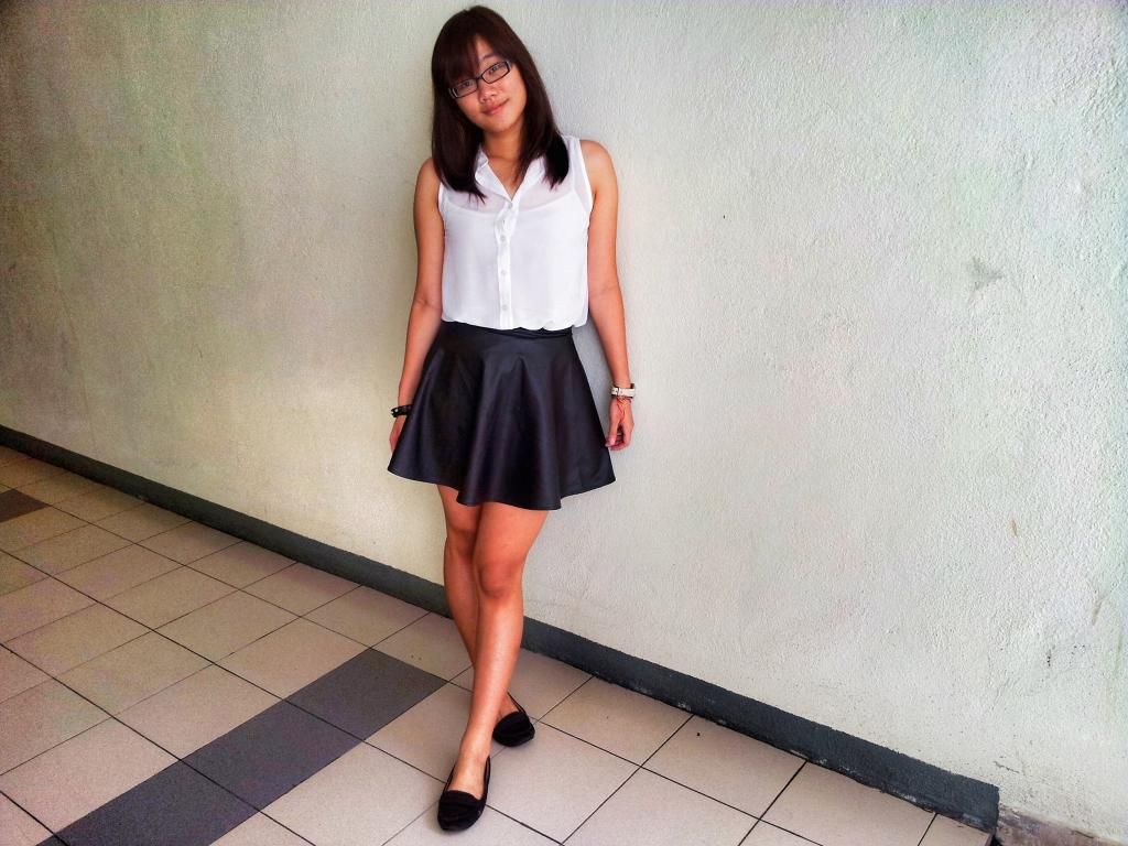 So cute outfit, love the leather skater skirt. :)